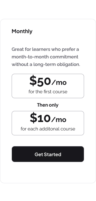 Monthly plan - $50 per month per subject/course with $10 per month per additional subject/course